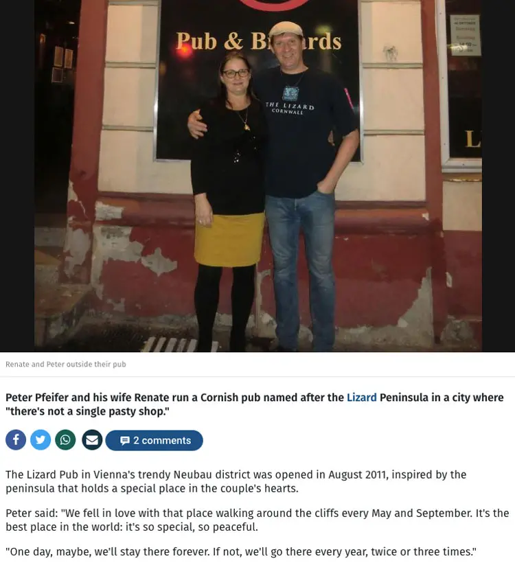You are always sure of a warm welcome at the Lizard. Great pub. If you are ever in Vienna you have got to go to the Lizard.